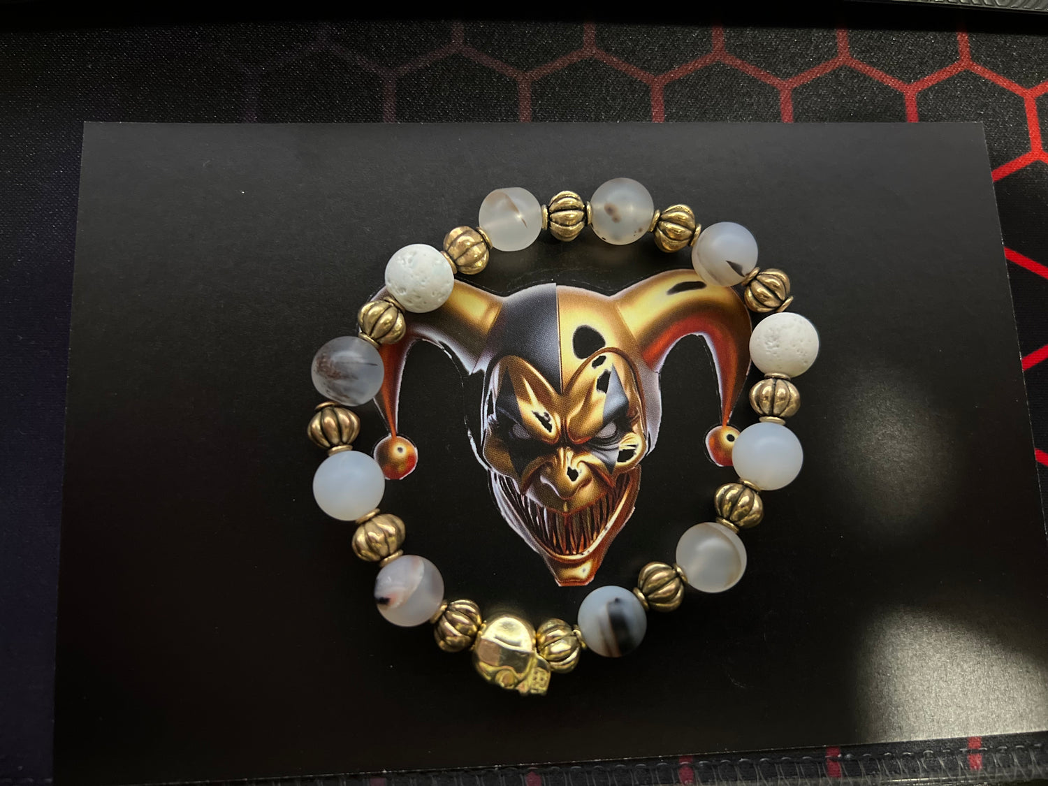 The Black and Golden Wired Agate, & Dark Red Jade. Together, these stones forge a bond between your spirit and the essence of the earth, Together, these stones forge a bond between your spirit and the essence of the earth.